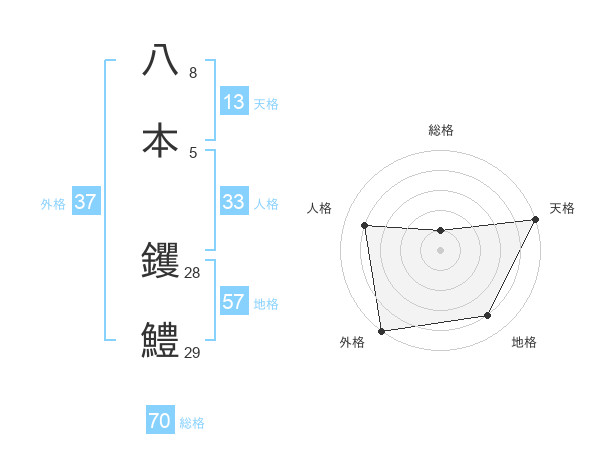八本 钁鱧さんの外格は37画の5点!