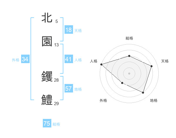 北園 钁鱧さんを姓名の画数から五運を鑑定