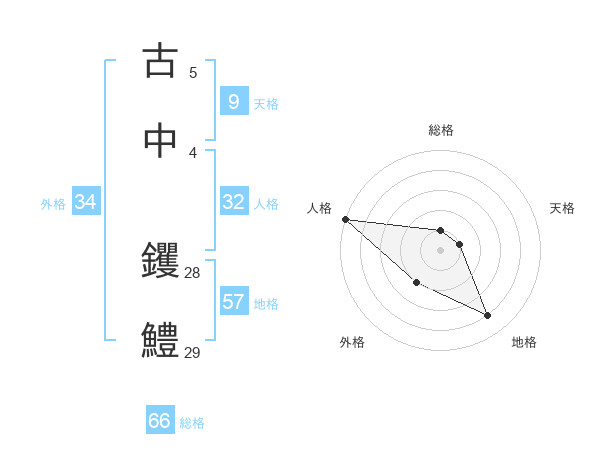 古中 钁鱧さんの総格は66画の1点!