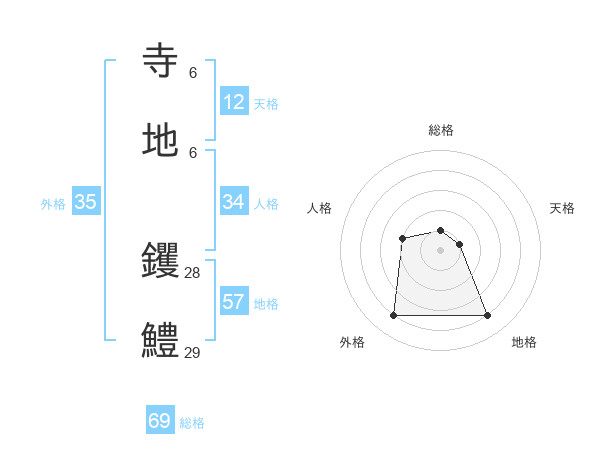 寺地 钁鱧さんの総格は69画の1点!