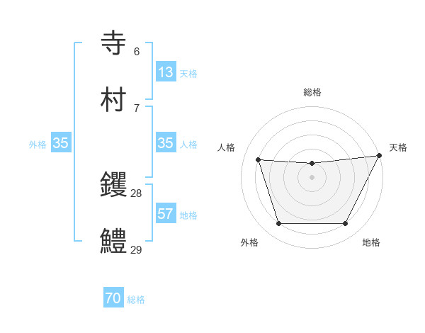 寺村 钁鱧さんの総格は70画の1点!