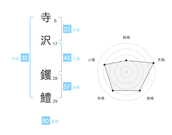 寺沢 钁鱧さんの総格は80画の2点!