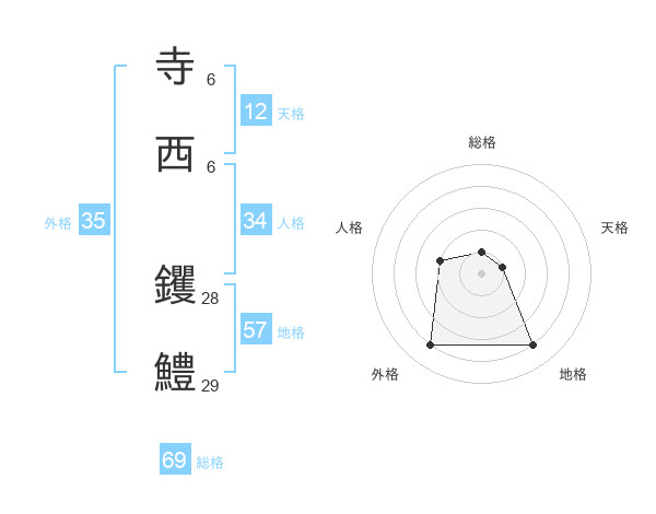 寺西 钁鱧さんを姓名の画数から五運を鑑定