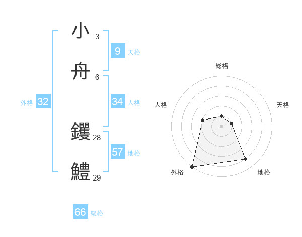 小舟 钁鱧さんの総格は66画の1点!