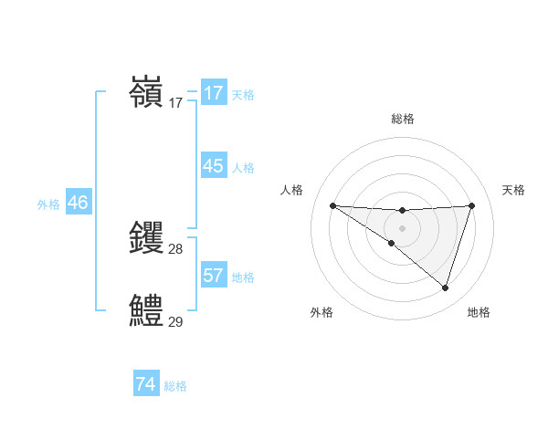 嶺 钁鱧さんの天格は17画の4点!