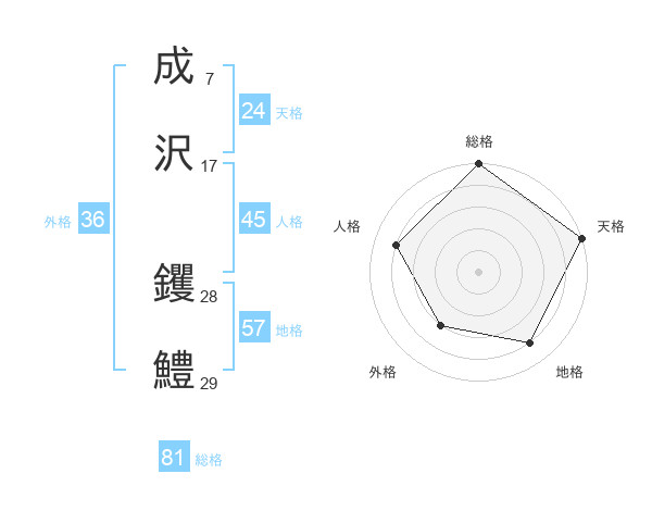 成沢 钁鱧さんを姓名の画数から五運を鑑定