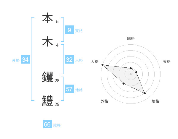 本木 钁鱧さんを姓名の画数から五運を鑑定