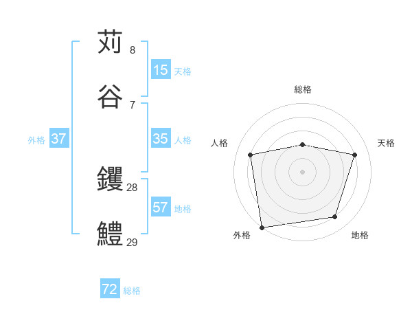 苅谷 钁鱧さんの総格は72画の2点!