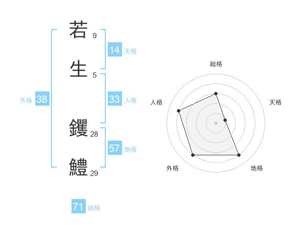 若生 钁鱧さんの総格は71画の3点!