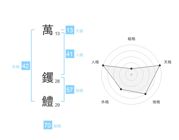 萬 钁鱧さんの総格は70画の1点!