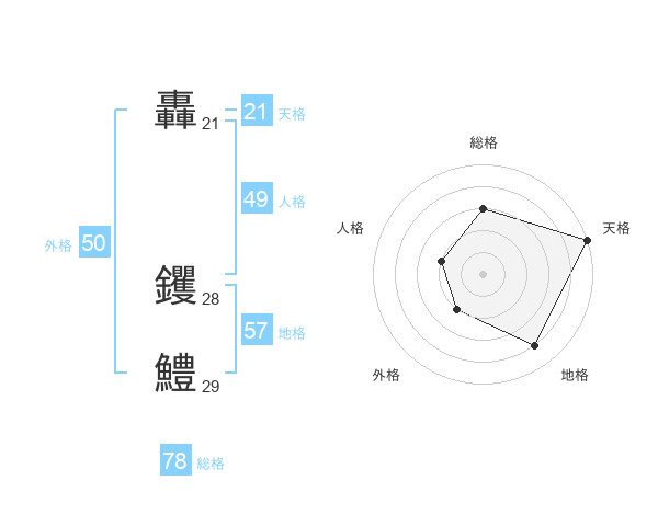 轟 钁鱧さんを姓名の画数から五運を鑑定