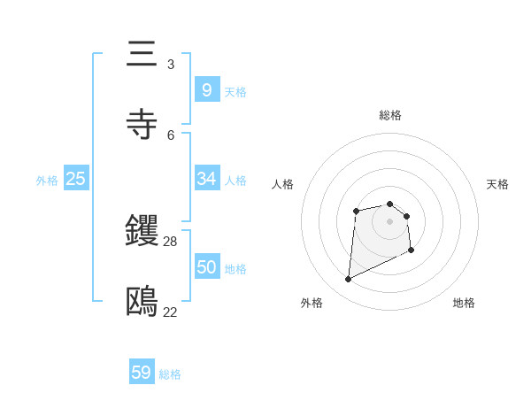 三寺 钁鴎さんの総格は59画の1点!