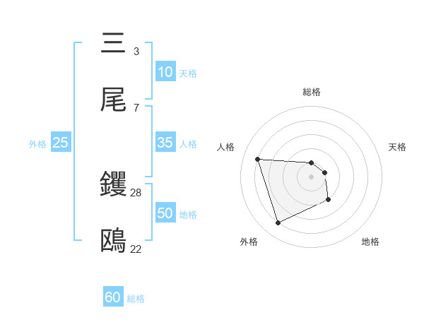 三尾 钁鴎さんを姓名の画数から五運を鑑定