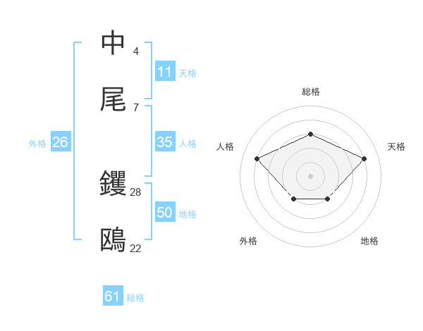 中尾 钁鴎さんを姓名の画数から五運を鑑定