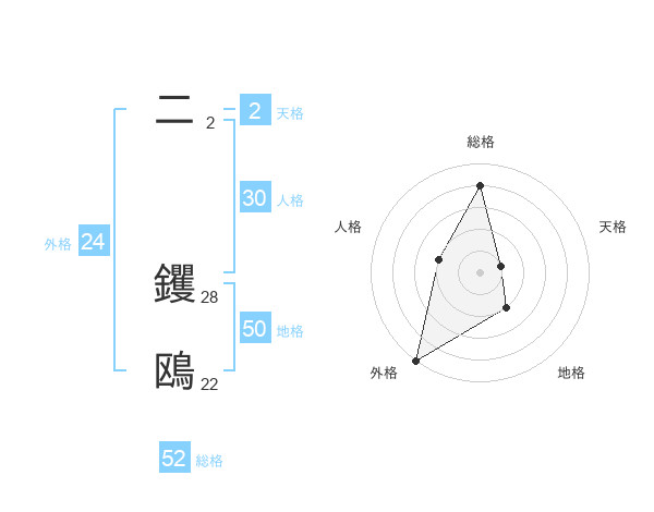 二 钁鴎さんの総格は52画の4点!
