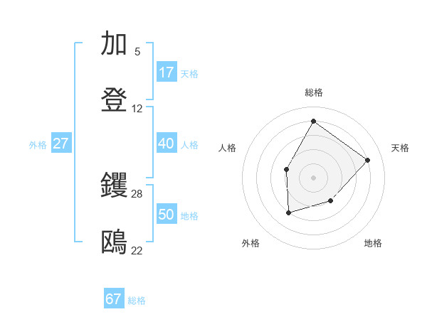 加登 钁鴎さんを姓名の画数から五運を鑑定