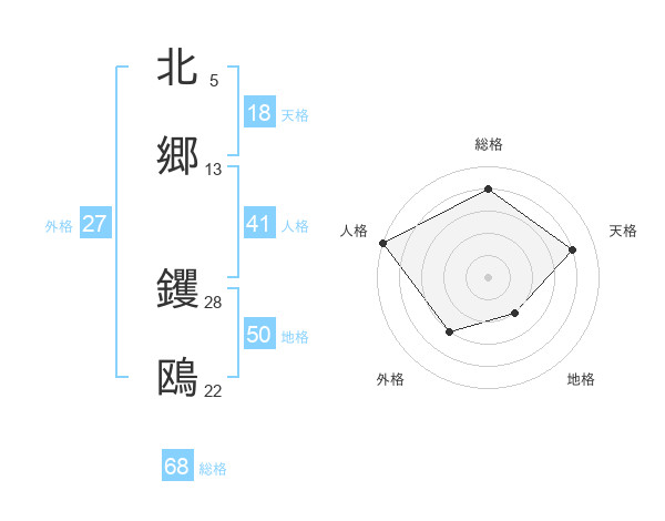 北郷 钁鴎さんを姓名の画数から五運を鑑定