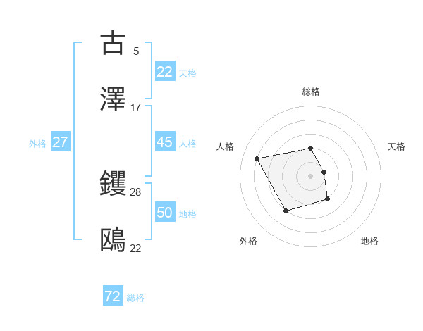 古澤 钁鴎さんの総格は72画の2点!