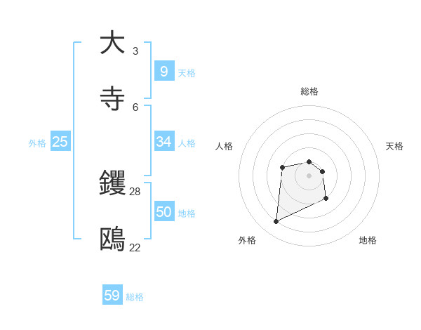 大寺 钁鴎さんを姓名の画数から五運を鑑定