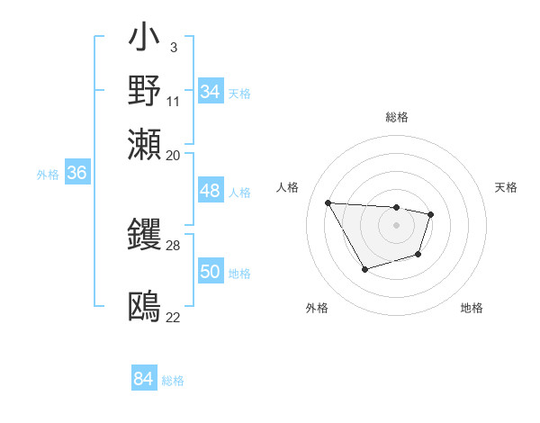 小野瀬 钁鴎さんの総格は84画の1点!