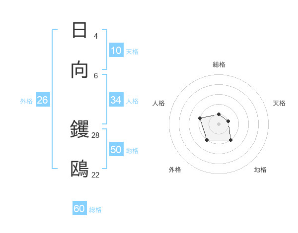 日向 钁鴎さんの総格は60画の1点!