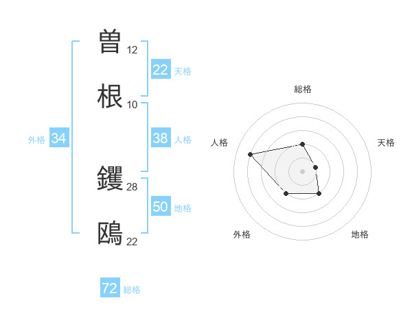 曽根 钁鴎さんの総格は72画の2点!
