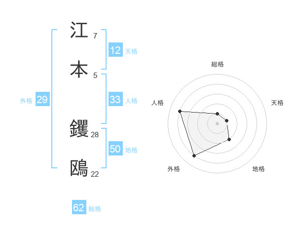 江本 钁鴎さんを姓名の画数から五運を鑑定