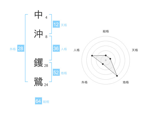 中沖 钁鷺さんの総格は64画の1点!