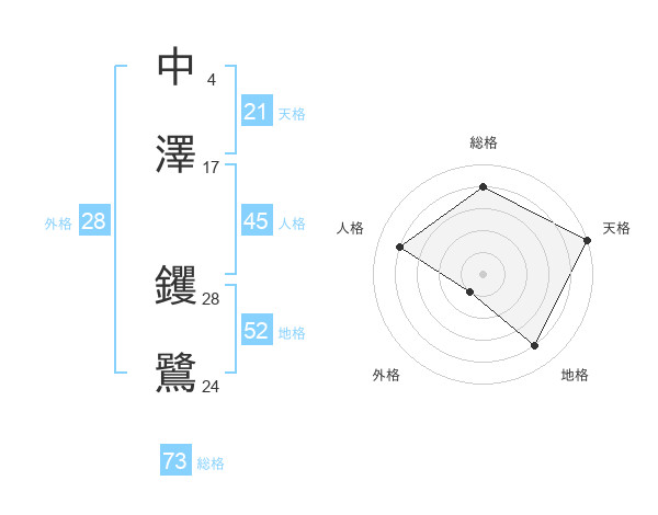 中澤 钁鷺さんの総格は73画の4点!