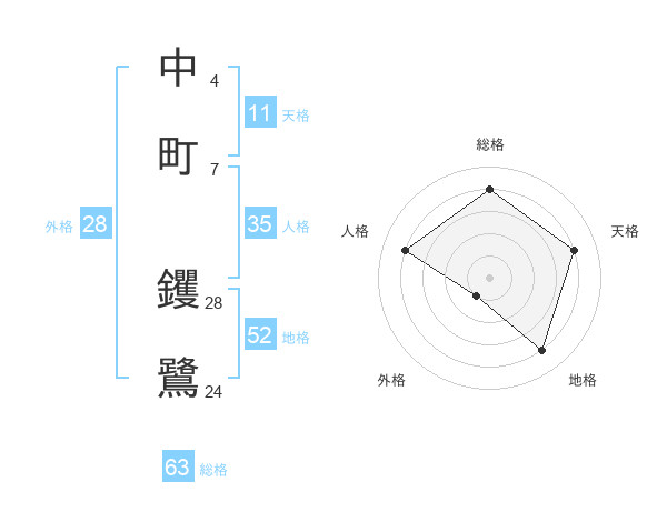 中町 钁鷺さんを姓名の画数から五運を鑑定