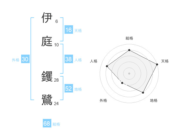伊庭 钁鷺さんの総格は68画の4点!