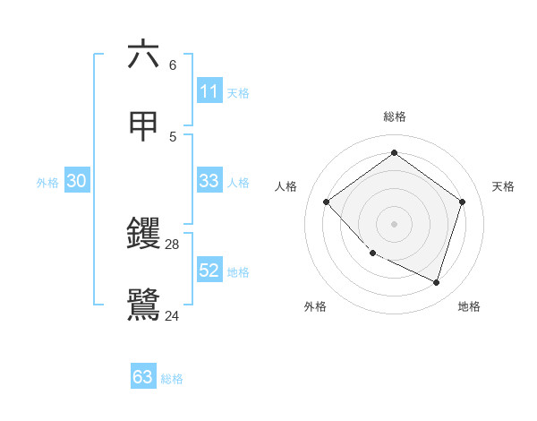 六甲 钁鷺さんを姓名の画数から五運を鑑定