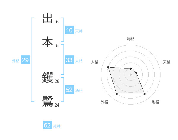 出本 钁鷺さんの地格は52画の4点!