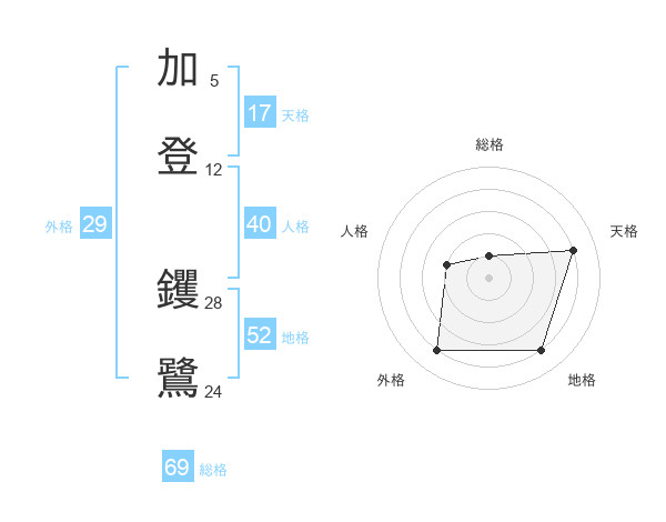 加登 钁鷺さんを姓名の画数から五運を鑑定