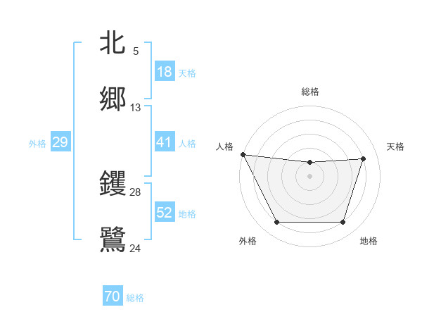 北郷 钁鷺さんの総格は70画の1点!