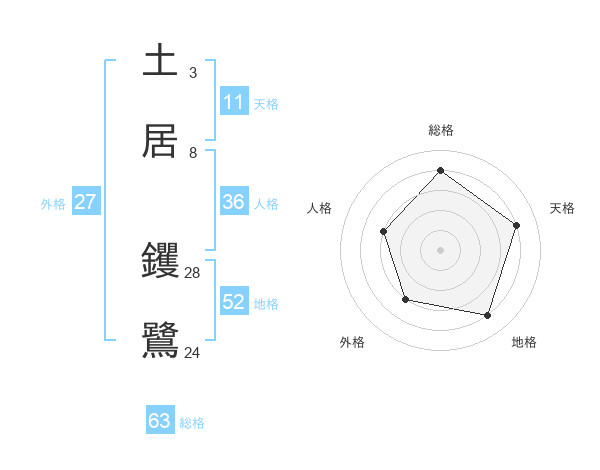 土居 钁鷺さんの総格は63画の4点!