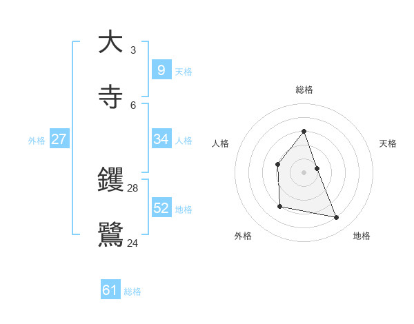 大寺 钁鷺さんの外格は27画の3点!