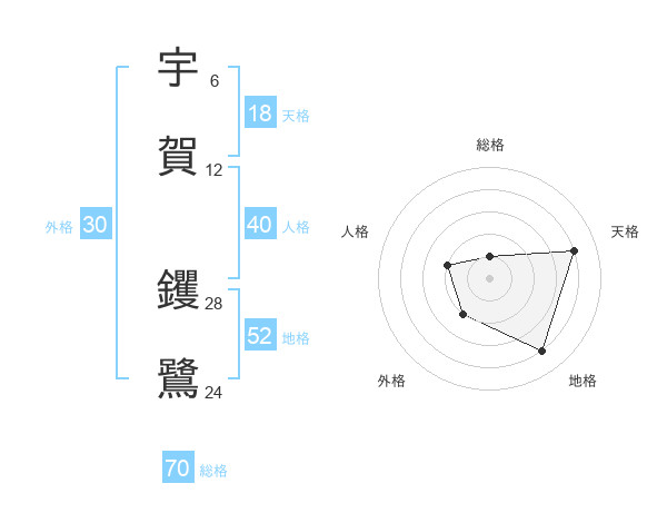 宇賀 钁鷺さんの総格は70画の1点!