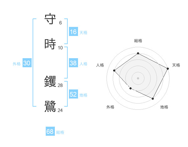 守時 钁鷺さんの総格は68画の4点!