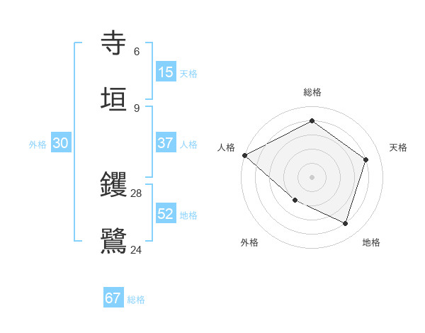 寺垣 钁鷺さんの総格は67画の4点!