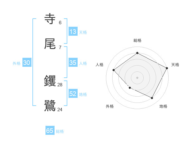 寺尾 钁鷺さんの総格は65画の4点!