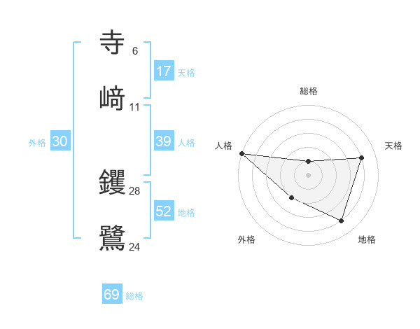 寺﨑 钁鷺さんの総格は69画の1点!