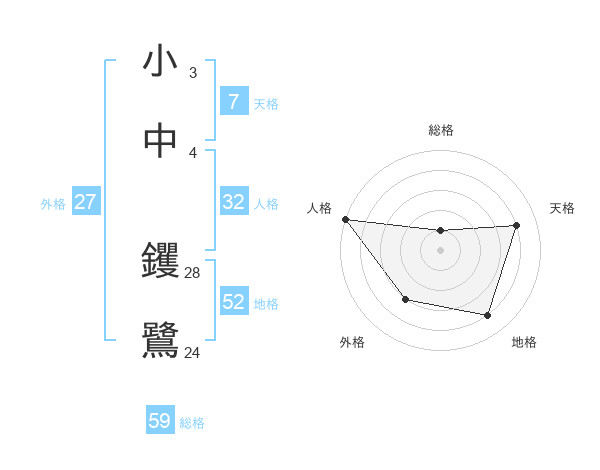 小中 钁鷺さんの総格は59画の1点!