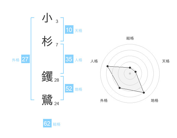 小杉 钁鷺さんの総格は62画の1点!