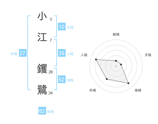 小江 钁鷺さんを姓名の画数から五運を鑑定