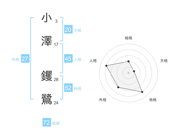 小澤 钁鷺さんを姓名の画数から五運を鑑定