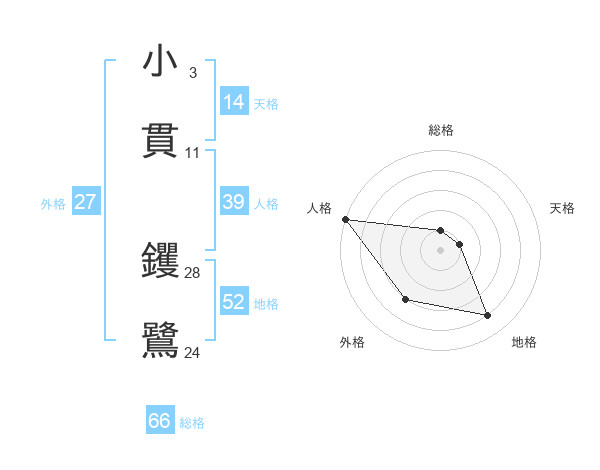 小貫 钁鷺さんの総格は66画の1点!