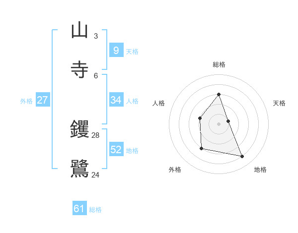 山寺 钁鷺さんの総格は61画の3点!
