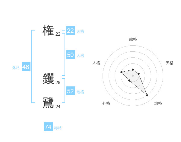 権 钁鷺さんの総格は74画の1点!