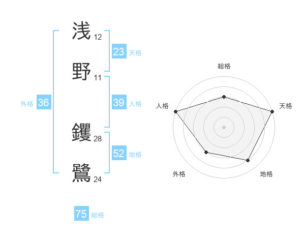 浅野 钁鷺さんの総格は75画の3点!